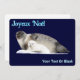A mother Ringed Seal and pup on an ice floe. French text reading, “Joyeux Noёl” appears in glowing blue and white. Add your own additional text.