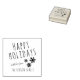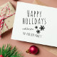 Glad jul skript med snöflinga jul gummistämpel. Modern och festlig stämpel för julhelgen. Enkla snöflingor med Glad jul text och ett familjenamn - du kan anpassa valfri text på stämpeln. Använd denna stämpel för din julhälsning till dina vänner, familj, kollegor,... Skapa din personliga julstämpel för familjen.