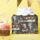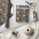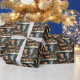 Njut av detta bedårande omslags papper för dina högtidsfiranden. Denna "Glad jul Teddybjörnar" dropplatt design sitter nära en dekorerad julgran iförd tröjor. Den större björnen håller en mugg medan han sitter bredvid en hög med presenter med ett ljus som sprider rök.