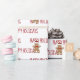 Röd GLAD JUL text med pepparkaksgubbar på vit bakgrund.