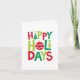 Skicka glada och ljusa julhälsningar med detta färgglada kort med roliga och lekfulla illustrationer som en del av orden "glad jul". Insidan har en plats för personligt meddelande och namn, men kan också lämnas tom.