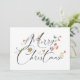 Ett glad jul julkort med en modern boho-design med vilda blommor och fjärilar