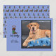 Anpassa detta roliga och kvicka, platta, julkortsmall med foton. Lägg till ditt eget personliga/familjefoto (eller det för din söta hund). Detta blå kort har min originella, handritade, fantasifulla illustration av en söt dachshund som bär en grön halsduk och renhorn. Under i handritad text står det "Feliz Navidog". Anpassa din egen hälsning och skriv ditt namn. På baksidan finns ett koordinerande, upprepat mönster av dachshundar utklädda till renar. Detta är ett roligt och enkelt kort för att fira din kärlek till hundar.