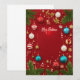 Skapa ett julkort på en röd bakgrund och skriv 'God Jul 2024!' Lägg till juldekorationer, glaskulor och Tomte