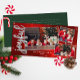Dela glädjen under säsongen med detta festliga julkort med 3 foton med en djärv skript "Glad" design och varma röda julfärger. Personifiera ditt familjenamn, år och foton för att skapa en uppriktig souvenir som vänner och nära och kära kommer att värdesätta. Perfekt för glada, mysiga och klassiska familje julhälsningar.