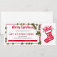 En ren, festlig vit och röd design med en järnek/efterrank-bård och en detaljerad julstrumpa-grafik. Perfekt för att leverera en personlig "Gåva eller Händelse" till Romeo från Susan. Lätt att anpassa för vilken högtidsgåva eller -upplevelse som helst.