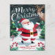 Ett festligt julkort med jultomten omgiven av livfulla sockertoppar som sprider julglädje och goda önskningar.