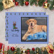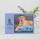 Anpassa denna roliga och kvicka, platta, semesterkortsmall med foton. Lägg till din egen personliga/familjefoto (eller bilden av din söta hund). Detta blå kort har min originella, handritade, fantasifulla illustration av en söt dachshund som bär en grön halsduk och renhorn. Under bilden står det med handstilat skrivsätt "Feliz Navidog". Anpassa din egen hälsning och skriv ditt namn. På baksidan finns ett koordinerande, upprepande mönster av dachshundar utklädda till renar. Detta är ett roligt och enkelt kort för att fira din kärlek till hundar.