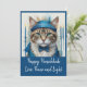 Fira ljusfesten med denna unika och fantasifulla Hanukkah-inbjudan med en katt i förklädnad. Perfekt för kattälskare, den här designen blandar humor med högtidstraditioner, vilket gör den till ett underbart sätt att önska fred, kärlek och ljus under den här årstiden. De trendiga teal-, turkos- och blåfärgerna ger en modern touch till denna tidlösa firande.