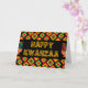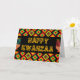 Färgglad och livfull GLAD KWANZAA gratulationskort i röda, gula och gröna färger. Designen visar ett mönster av färgglada rutor och halvbilder av Kwanzaa Nguzo Saba-ljusen. Detta Kwanzaa-kort skulle vara en bra present till familj, vänner och kunder under Kwanzaa-säsongen. Välj från ett brett urval av Kwanzaa-kort, heminredning och presenter, designade av Berean Designs.