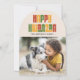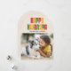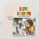 Ett välkomstkort i form av en båge med Glad Kwanzaa med din egen bild och texten "Glad Kwanzaa" i rött, grönt och gult, med möjlighet att anpassa namnet nedan i mörkgrått. Ljusbeige bakgrund. Lägg till ett eget meddelande eller ta bort texten på baksidan.