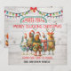 Det här fantasifulla och roliga julkortet kommer att bli en favorit bland dina vänner och familj! Det finns 5 hönor på framsidan som har julbelysning insnurrad runt sig, tomtehattar och en med renhorn. Bakgrunden är ett rustikt gammalt staket. Typografin lyder God Julskrock från vår coop till din, sedan anpassar du det med ditt familjenamn eller förnamn. Baksidan av kortet är en liten rolig överraskning. Det finns en skylt som säger North Pole Milk & Cookie Co. Baking Fresh Daily Since 1847. Ovanför finns julbelysning och en rosett som hänger överst. Längst ner finns en galen höna som säger "Squawk! Jag glömde ta kakor ur ugnen!" Ett roligt kort för hönsälskare, hönsod