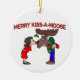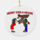 Ett gulligt långt till något att säga "god jul". Manen leker ett trick på hans flicka med ett välfylldt älghuvud med mistletoen som uppe i luften hänger. Glad kyss en älg alla!