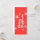 Lekfull, glad grafisk design av ett uttryck "God Jul" med geometriska former i snöflingaabstraktion i röd färg. Handskriven, kalligrafisk typografi.