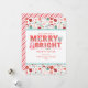 Glad Merry & Bright | Retro rosa och röd järnek Julkort