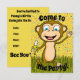 En glad apa utgör denna roliga festinbjudan. Anpassningsbar så att du kan lägga till din egen text och ändra bakgrundsfärgen.