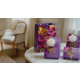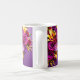 En livfull Mors dag-mugg inslagen i en frodig bukett av lila rosor, gula liljor och glada blommor, allt mot en rik lila bakgrund. Färdigt med elegant guldsnitt, gör denna hjärtliga design varje klunk till en firande av Mams kärlek och skönhet.