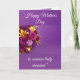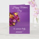 Ett livfullt lila Mors dag-kort med en frodig bukett rosor och liljor, i kombination med elegant vit skrivstil som delar ett hjärtligt meddelande till någon som verkligen är älskad.