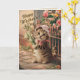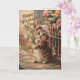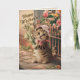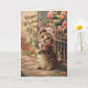 Söt vintage-stil gratulationskort med en kattunge som håller blommor, collagekonst. - glad mors dag hälsningar till en kattälskande mamma. Inuti finns ett meddelande som du kan anpassa eller bara ta bort.