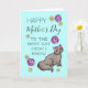 Det här kortet har orden "Glad mors dag till den bästa kattmamman jag känner" på framsidan med söta tecknade bilder av en katt och blommor. Insidan står "Jag hoppas att denna dag är fylld med allt du älskar" som kan anpassas helt eller tas bort.