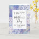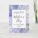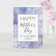 Det här kortet har orden "Glad mors dag till den bästa mamman" på framsidan tillsammans med en kant av blommande mandala-designs på en lavendel lila akvarell bakgrund. Insidan lyder "Jag hoppas att denna dag är fylld av glädje och kärlek" som kan anpassas helt eller tas bort.
