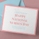 Fira National Nurses Day med en touch av elegans och tillgivenhet. Detta vykort presenterar en hjärtlig proklamation i mjuk, skuggad röd typografi, som djärvt förklarar "Happy National Nurses Day" mot en felfri vit bakgrund. Inramad av en mjuk rosa ram som ger en subtil färgnyans, förmedlar kortet ett uppriktigt meddelande om tacksamhet med en underdriven men ändå påverkande design. Detta är en perfekt gest för att visa uppskattning för de sjuksköterskor som ägnar sina liv åt att vårda andra, med en design som är både klassisk och samtida.