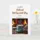 31 januari är nationella het chocolad-dagen. Inuti kortet finns en lista med sätt att fira, en söt ordvits och en Kawaii het choklad.