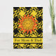 Glada Norooz-önskningar till mamma och pappa, föräldrar, Sol-design på gul och svart papperskort. En positiv-negativ sol-designillustration i gult och svart skapar en balanserad känsla av energi. Persiskt nyårskort med sol. Bild och vers copyright © Shoaff Ballanger Studios, 2023.
