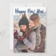 Glad nyår Foto Blå Skript Overlägg Modern Julkort