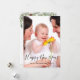 Foto Julkort Glad ny 2021 År med familjefoto och svart manus teckensnitt text. Vacker bakgrund på baksidan av kortet, med familje meddelande.
