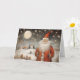 Den här fantasifulla illustrationen av jultomten i en snöig by under en månljust natt är perfekt för dina personliga eller affärsmässiga julkort. Texten på insidan kan ändras. AI-assisterad grafik köpt med kommersiell användning. Konstverk: DelightfulDigiArt