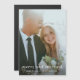 Glad och gift Julkort med bröllopsfoto med minimal vit överlagringstypografi på framsidan. Baksidan är en magnet. Klicka på redigeringsknappen för att anpassa denna design.