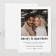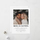 Den här julkortet är designat för nygifta som firar sin första jul som gifta, och blandar modern enkelhet med säsongens charm. Det har ett fyrkantigt foto som du kan ladda upp för att visa din favoritminne tillsammans. Frasen "merry & married" i en djärv typografisk design åtföljs av ett delikat hjärta bredvid. Under det visas dina personliga julönskningar elegant i två kompletterande teckensnitt, tillsammans med året längst ner, vilket skapar en tidlös minnessak.