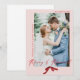 Detta rosa nygifta julkort är klassiskt och enkelt men ändå lekfullt. Dela ditt bröllopsfoto av bruden och brudgummen med vänner och familj i denna design som har orden "Glad och gift" i en script calligraphy med en serif stil. Er bröllopsbild är accentuerad med ett handmålat vattenfärgat rött band för att ge en feminin julstämpel!