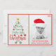 Modern, färgglad julkort har ett julgran till vänster som med typsnitt skriver ut "Oh by Golly, have a Holly Jolly Christmas". Bakgrunden är ett fint vitt diagonalt rutigt mönster. Du anpassar höger sida av kortet med ditt eget familjefoto eller barnets foto, ditt efternamn och förnamn. Året står högst upp. Personalisering görs enkelt genom att använda knappen "personalize this template". Baksidan har den vita rutiga bakgrunden och ordet glädje!