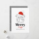 Skicka festlig glädje med detta julkort ”Merry & Bright” som har en djärv illustration i svart linjestil av en bulldogg som bär en klassisk röd tomtehatt. Den rena vita bakgrunden och det minimalistiska svart och röda typsnittet ger en modern och iögonfallande look. Perfekt för bulldogg-älskare, djurägare och alla som vill dela en rolig och snygg julhälsning. Personliggör med ditt efternamn och år för en speciell säsongstouch.
