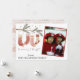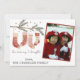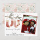 Det här söta julkortet är gjort i mjuka nyanser av mauve och rosa. Det finns en tallgren med fyra olika julstrumpor som hänger från den och gnistrande stjärnor ovanför. Typografin säger "be merry and bright". Lägg till ditt favoritfoto med den lättanvända mallen som tillhandahålls och lägg till ditt familjenamn och du är klar! Baksidan har en collage av alla möjliga julord och -uttryck, som Let it snow, Deck the Halls, Ho Ho Ho, Silent Night, Holly Jolly med mera. De är gjorda i nyanser av mauve och salvia grön.