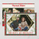Glad och ljus randig geometrisk julkort med foto. Dubbelsidig med tre foton på baksidan.