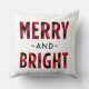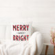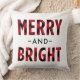 En livfull "Glad och ljus" kastkudde med stor typografi fylld med ett ljust rött och svart buffelkartrömsmönster på en ren vit framsida. Baksidan visar den fulla ljusröda buffelkontrollen för en glad tvåsidig juldesign. En rolig, iögonfallande julaccent som ger energisk säsongsstil till alla rum. All text är tryckt som visas.