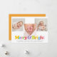 Ett roligt färgglatt modernt glad och ljust 3-foto collage jul födelse kungörelse kort. Personifiera med dina speciella foton, julhälsning och födelseinformation. Designad av Thisisnotme©