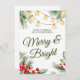 Ett festligt julkort med akvarellgrönska, röda bär och lysande slingljus med frasen ”Your referrals keep our business Merry & Bright.” Baksidan kan personanpassas med ditt namn, din logotyp eller ett anpassat meddelande för dina kunder. Denna glada, klassiska julstil är perfekt för fastighetsmäklare, småföretagare eller någon som vill uttrycka sin tacksamhet under högtiden. Den mjuka gröna och gyllene färgpaletten tillför värme och tidlös charm som passar vackert med denna säsongs nostalgiska jultendens.