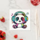 Glad panda med hörlurar som lyssnar på musik. pappersservett