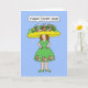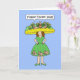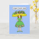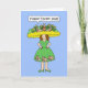 En tecknad av ett dam som bär en fantastisk klädsel och en motorhuv från Påsk. Dam säger "Glad påsk 2026". Bilden har en blek blå bakgrund för färgaden.
