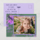 ram-kort för blommigt av i Glad påsk abstrakt. Blommorna är nyanser och lila. En grönt springa genom utformningen och den övergripande bakgrunden är grönt för mörk. Kortet är vackert, men ändå lugnande. Ditt foto är inramat med rosa och lila. Det finns en ömtålig lila drakfluga både fram och bak. Framsidan lyder: Glad påsk. Baksidan lyder: Från vår familj till er önskar vi er hälsa, solsken, skratt och kärlek.