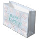 Glad påsk teal rosa och vit anpassningsbar söt peeking bunnies modern roligt rolig Påsk Large Gift Bag. Fullt anpassade teal text på blek blå redigerbar färg bakgrund.