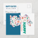 Redigerbart vykort för Påsk med Påsk blommigt bunny och textdesign på framsidan och en redigerbar baksida. Du kan ändra texten på baksidan genom att klicka på "Anpassa den här mallen - detaljer". Önska din familj och dina vänner i Glad påsk med det här unika Påsk-vykortet.