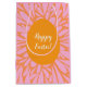 Ägg från glad påsk blommigt. Ägg av orange med blommigtens abstrakt sprängs. Papper papper presentsäck i Retro Påsk