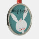 Glad påsk bunny kanin på blå tealbakgrund julgransprydnad metall