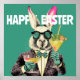 En söt Påskhare med solglasögon och ett kostym med en fluga runt nacke. Dessutom har han två cocktails i händer. Han trodde att han helt glömde att gömma alla äggen. En förfärande annorlunda utformning för Påsk som utmärker sig med sitt vackra färg och roligt motiv. Texten "Glad påsk" kan ha önskad personlig. "Coola Påsk" skulle förmodligen nästan passa bättre.