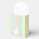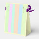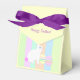 En enkel och söt design med en söt Påskhare sitta bredvid 2 rosa och Påskägg för gult på en pastellstrimlad bakgrund. All text är anpassade.